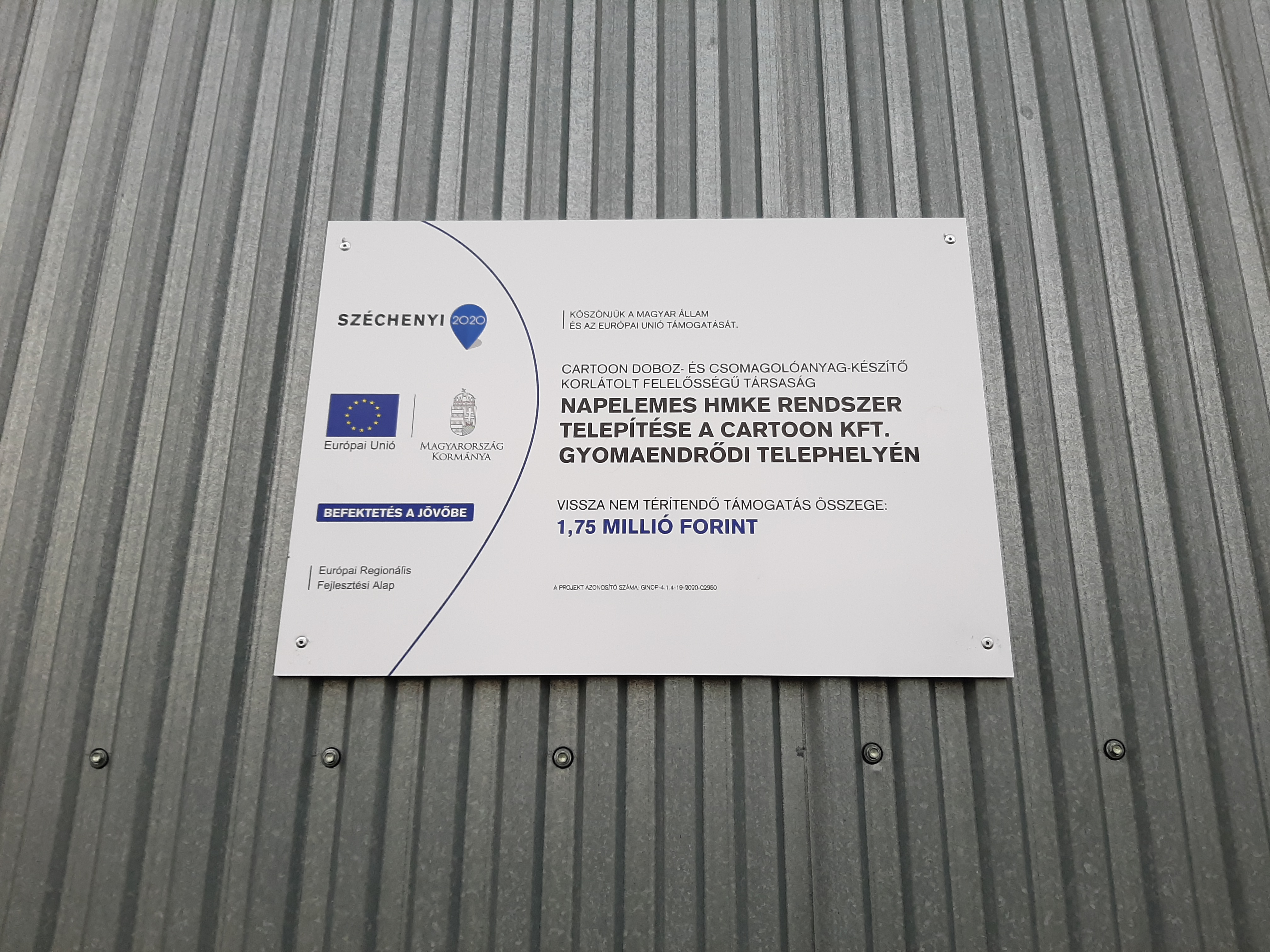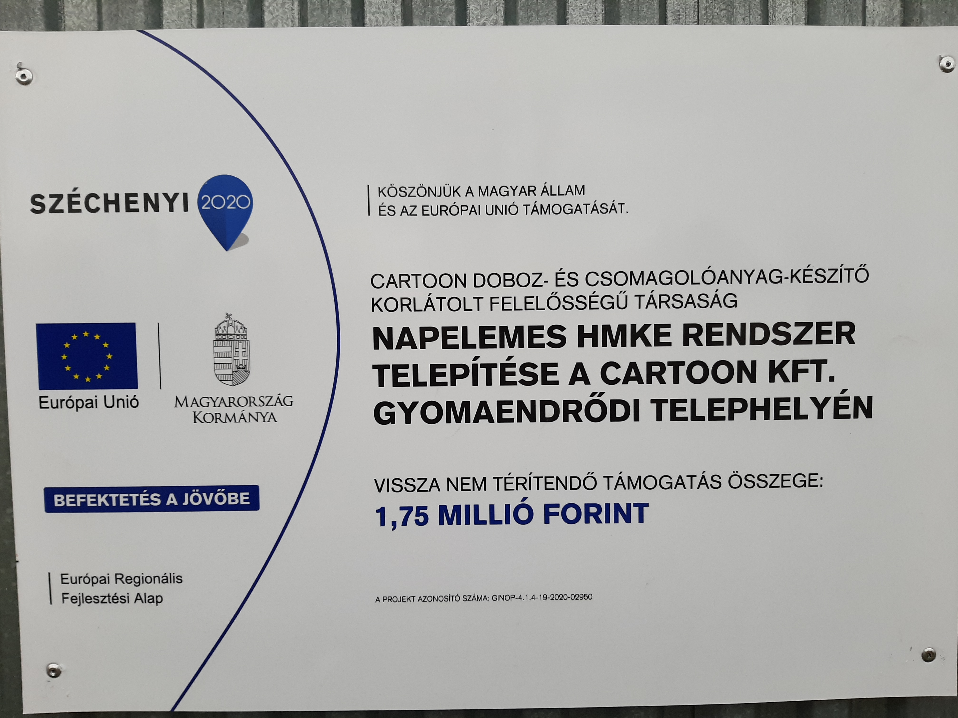 Projekt címe: Napelemes hmke rendszer telepítése a Cartoon Kft. gyomaendrődi telephelyén